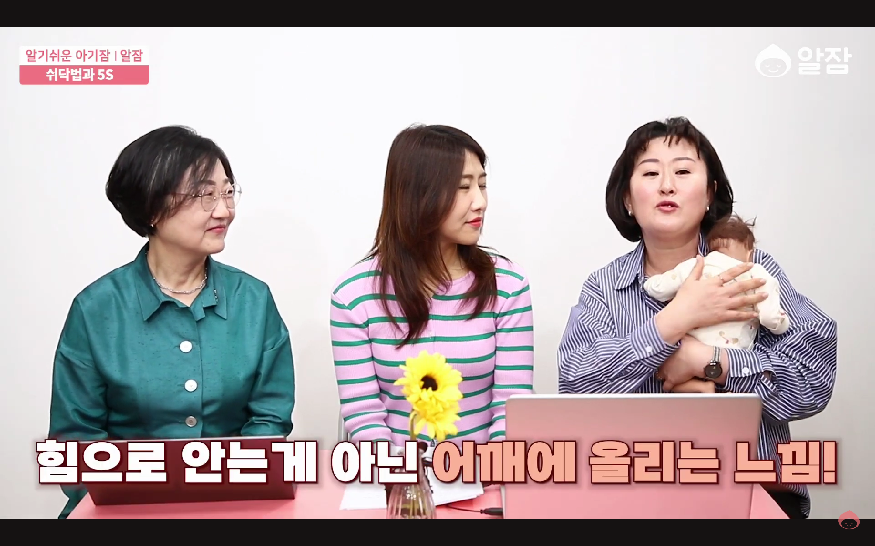 보통 이 방법은 아이를 안은 채로 진행하는데요. 아이가 잠들 때까지 안고 있는 것은 부담이 될 수 있어요. 아이를 나의 힘으로 안는다고 생각하지 말고 어깨에 아이를 얹어둔다고 생각해 보세요. 이렇게 하면 힘도 덜 들이고 아이가 떨어질 걱정도 없어요. 아이 심장과 엄마 심장이 맞닿아💕있어서 아이가 안정감도 잘 느끼게 된답니다. 만약 그래도 아이를 안는 것이 힘들다면 아이를 눕히고 손을 잡은 채로 진행하셔도 괜찮아요. 소리를 낼 때는 아이 귀👂가 있는 방향으로 고개를 돌리고 반복적이고 일정하게 소리를 내어주세요. 아이가 깰까 봐 너무 작은 소리로 하는 것은 오히려 효과가 없어요! 아이가 들을 수 있을 정도로 적당한 소리를 내주셔야 해요.