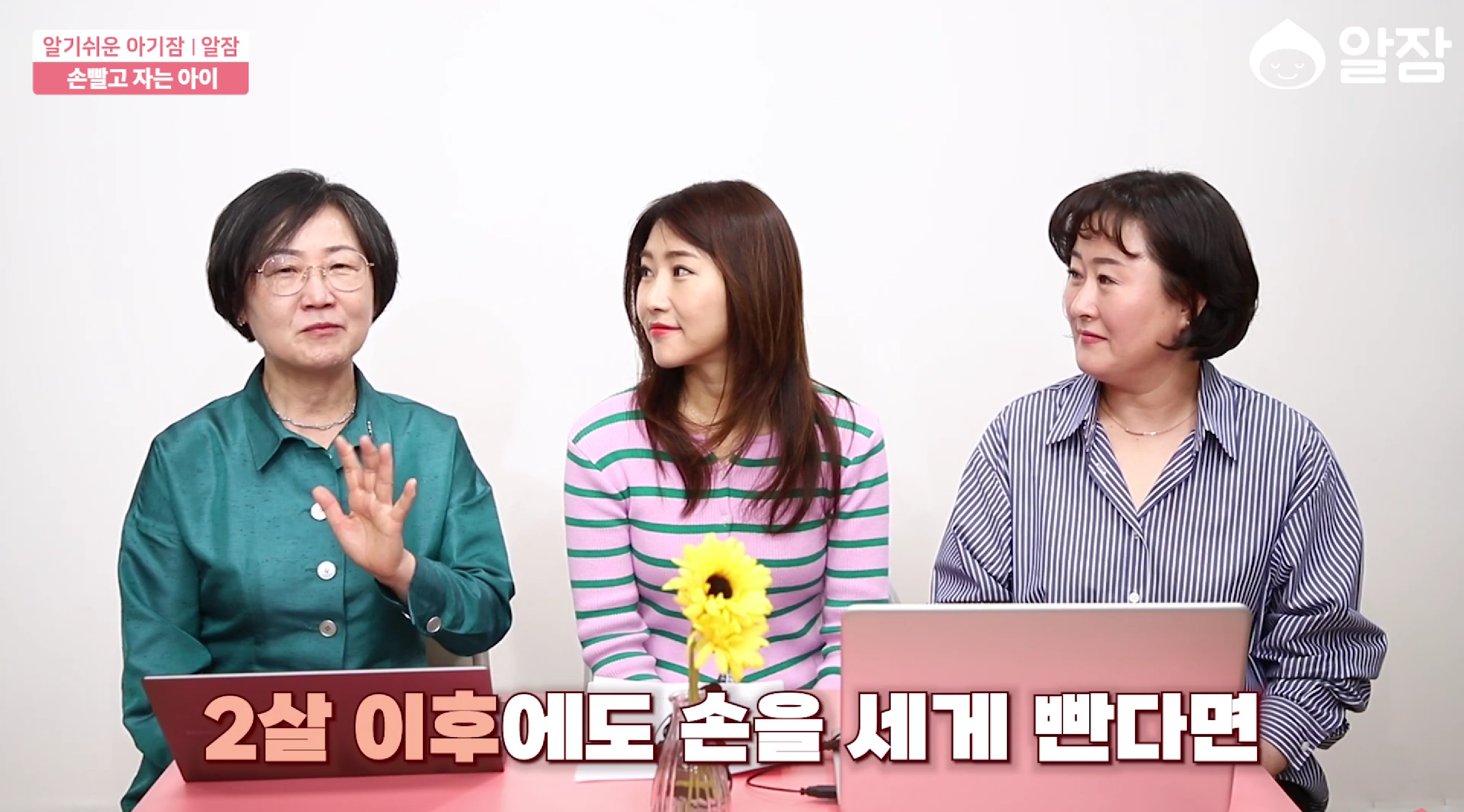 아이가 잠들기 위해서만 손을 빤다고 하면, 몇 살이든지 걱정하실 필요가 없어요😉. 입면을 위한 손빨기는 시기가 되면 대부분 저절로 끊기게 되어 있답니다. 그러나 두 살이 넘어서도 손빨기가 끊기지 않았다면, 아이의 잇몸이 튀어나오거나 교합🦷의 문제가 생길 수 있기 때문에 다른 진정 방법을 찾아주셔야 해요.