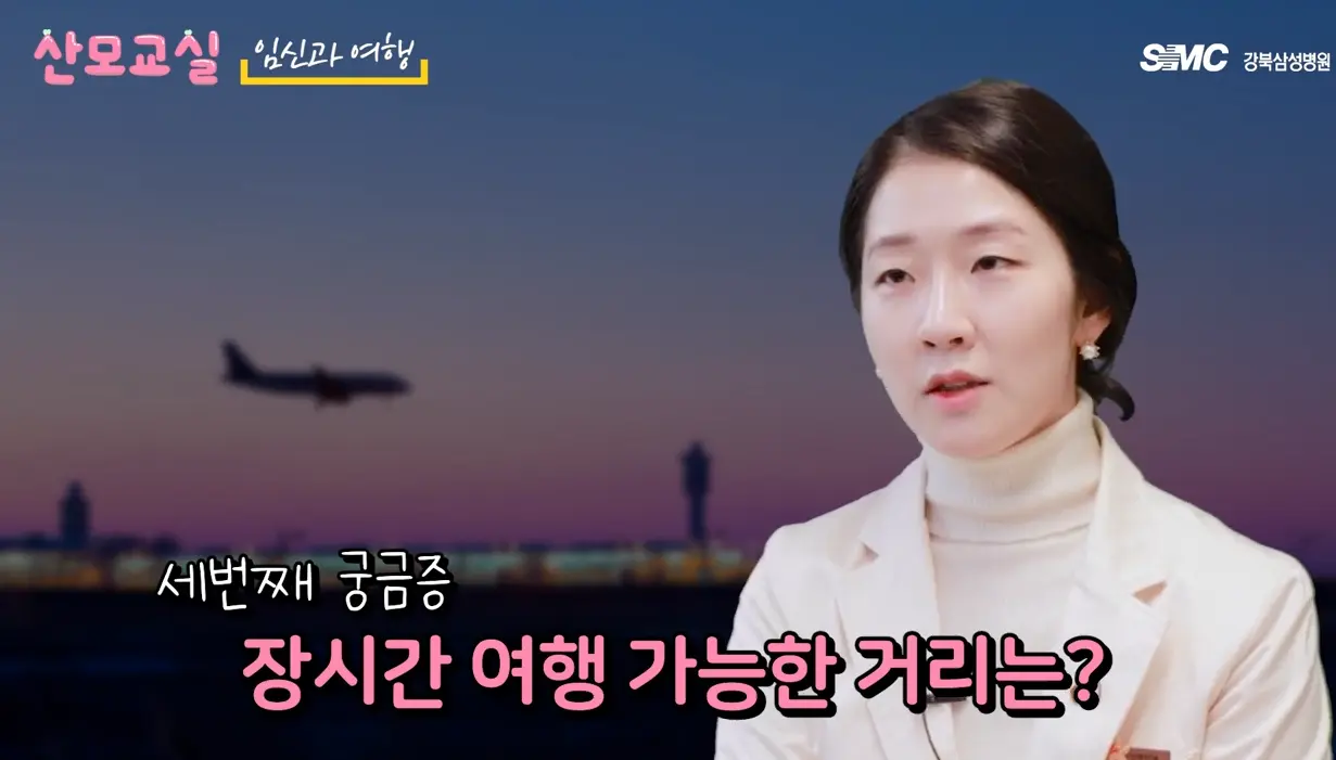 거리보다는 이동 시간이 중요한데요. 일반적으로 5시간 이내라고 말씀드려요. 여행 중 장시간 앉아있고 기내라면 기압과 습도가 낮아지기 때문에 산모들에게 일시적으로 경미한 저산소증이 생길 수 있어요. 이에 따라 혈전이나 부종이 더 심해질 수도 있고요😣. 이를 예방하기 위해서는 1시간 간격으로 휴게소에 들러 조금 걸으면서 휴식을 취해주세요. 기내라면 기내 흔들림이 없을 때 복도를 중간중간 걸어주세요🚶♀️. 또 압박 스타킹을 처방받아 착용하시면 더욱 좋을 거예요.