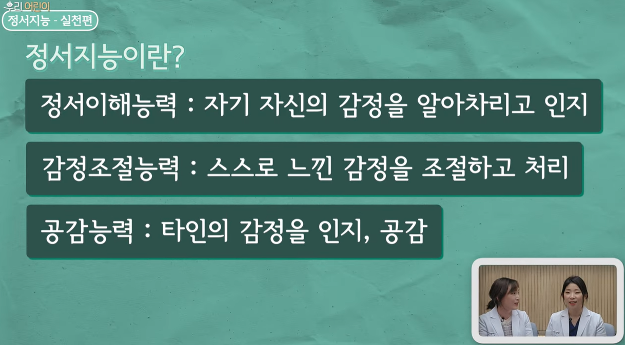 먼저, 기본 전제로 "엄빠는 자녀의 거울이다"라는 문장을 기억해 주셔야 돼요. 아이들은 엄빠의 모습을 바탕으로 모델 삼아 연습을 해요. 그렇기 때문에 엄빠는 아이들의 정서 지능을 높이는 방법을 알고 있으면 좋아요.😁