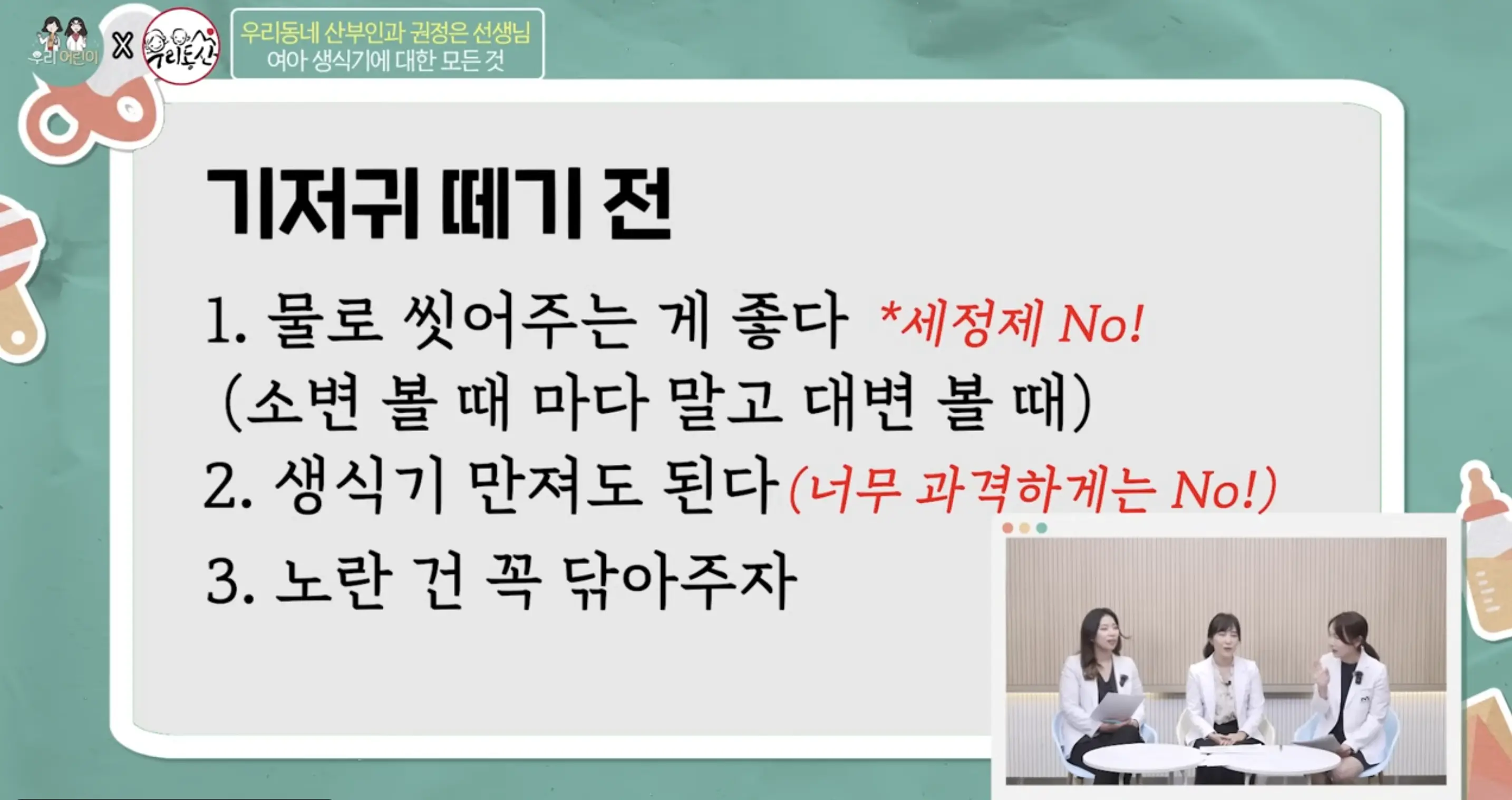 변이 단단해지기 시작하면 물로 씻는 횟수를 줄여도 괜찮아요. 다만 습관적으로 너무 늦게까지 씻어 주면 아이가 다른 환경에서 불편을 느낄 수 있어요.