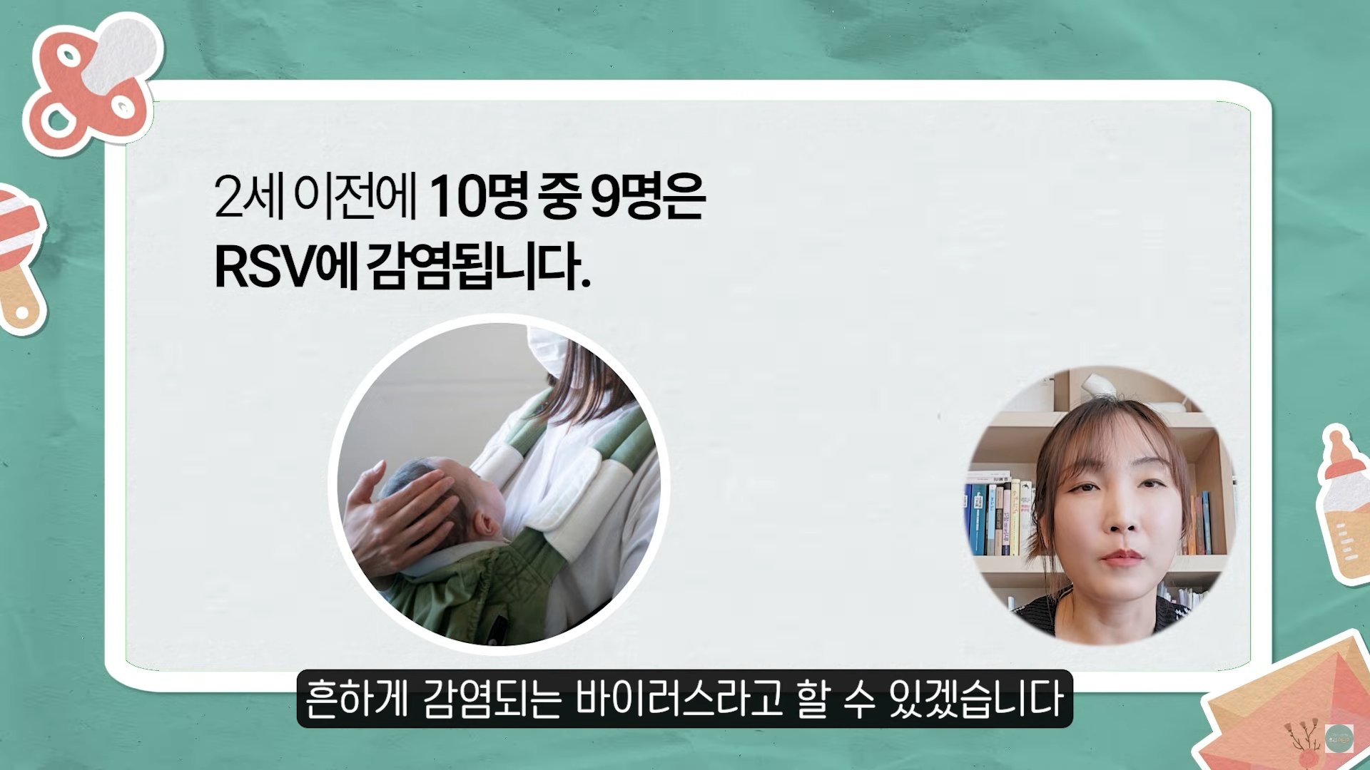 RSV는 영유아에게 급성 호흡기 질환을 일으킬 수 있는 바이러스로, 장난감이나 수건 등 물체에 묻어 있다가 접촉을 통해 전파돼요. 전파가 쉬운 만큼 2세 이하의 아이들 10명 중 9명은 한 번 이상 감염될 정도로 흔한 바이러스예요.
