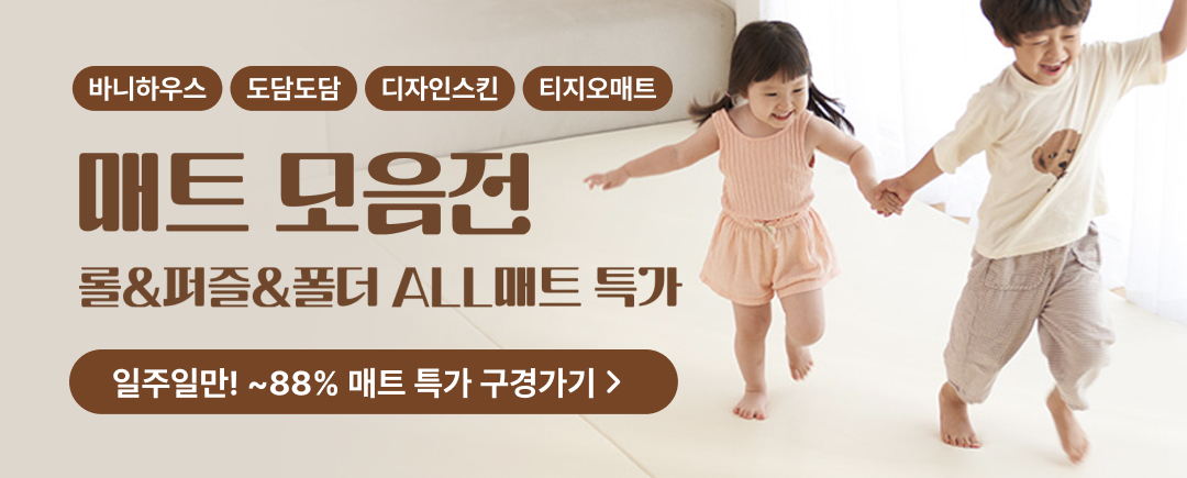 빌리가 엄빠님들을 위해 준비했어요! 365일 무료배송🚚은 기본, 이번 주 단 1주일간( ~ 9/1) 인기 육아 매트 브랜드들을 한곳에 모아 최대 88% 초특가 할인을 진행해요.✨ 바니하우스, 도담도담, 디자인스킨, 티지오매트 등 믿고 쓰는 브랜드들을 가장 저렴하게 만날 수 있는 기회예요. 🎉