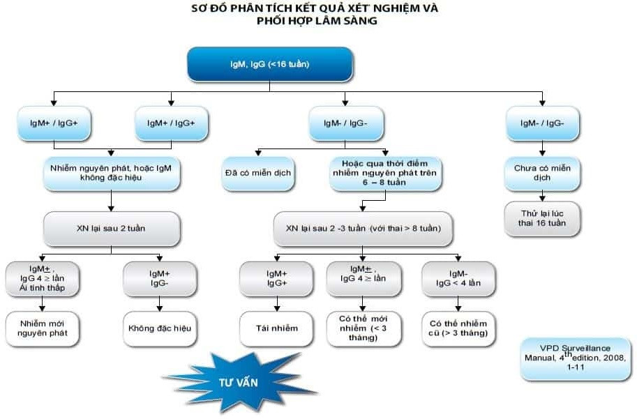 Không nên xét nghiệm ở tuổi thai > 16 tuần vì khó giải thích kết quả và thai lớn cũng khó giải quyết. Các mẹ nên tiêm phòng trước khi mang thai để chủ động phòng ngừa Rubella. Tiêm phòng trước khi mang thai chính là cách tốt nhất để bảo vệ sức khỏe của mẹ và thai nhi.