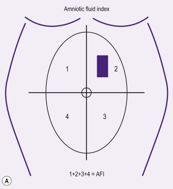 Đo chỉ số nước ối AFI bằng cách chia buồng tử cung làm 4 phần, hai đường cắt nhau tại rốn của thai phụ, đo bề sâu của khoang ối lớn nhất trong mỗi buồng và tính tổng số các số đo trên.